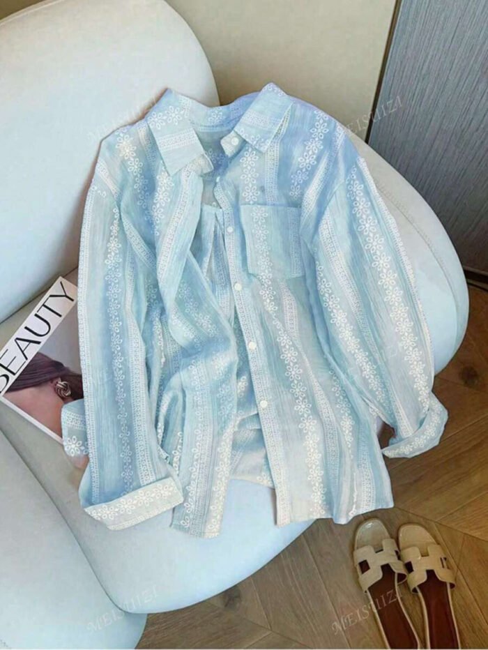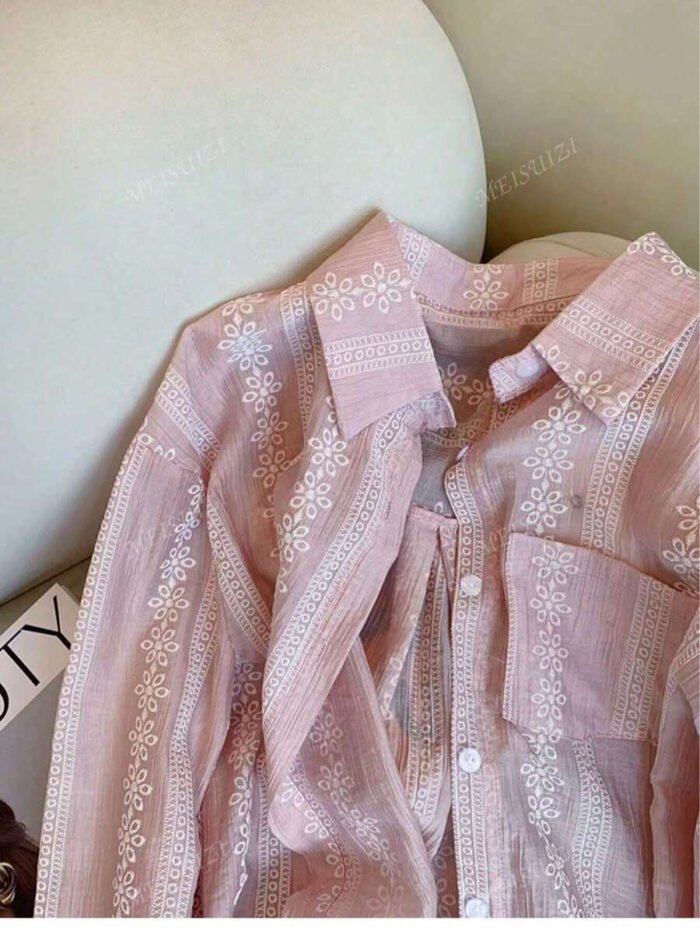 الرئيسية بلايز بلوزة كاجوال مطرزة بالجاكار