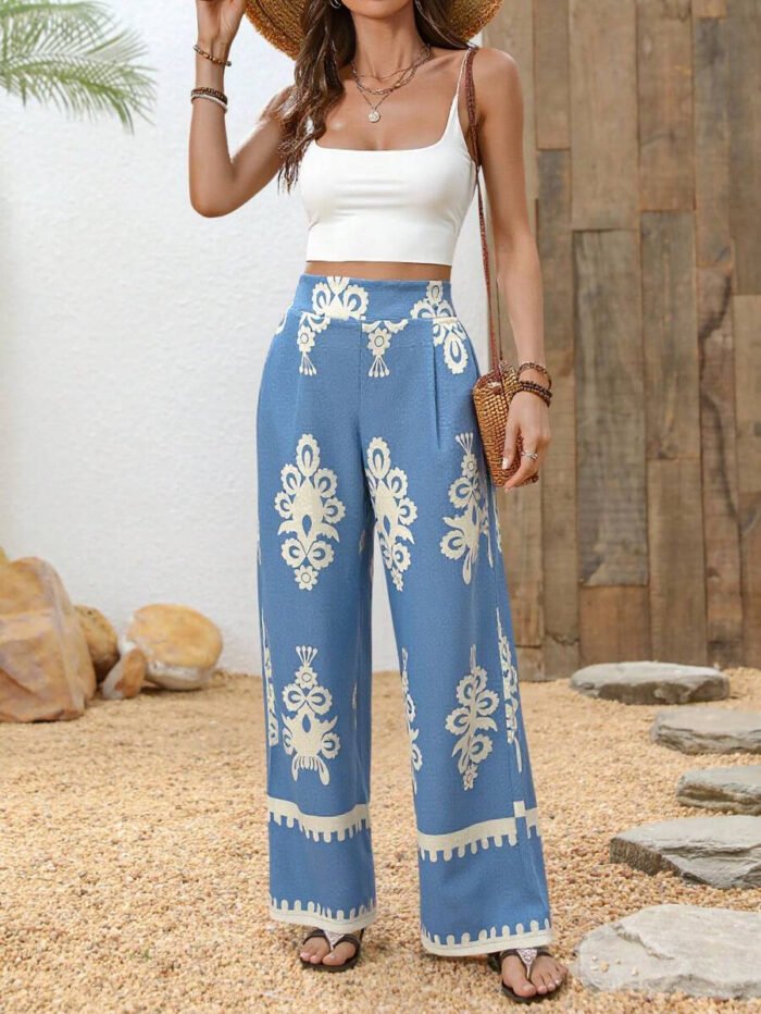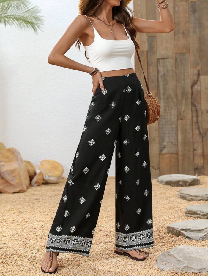 بناطيل نسائية كاجوال واسعة الساق بالطراز البوهيمي