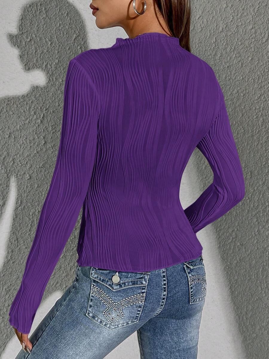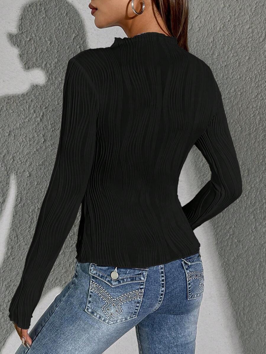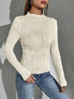 قميص نسائي قصير الياقة بالطيات