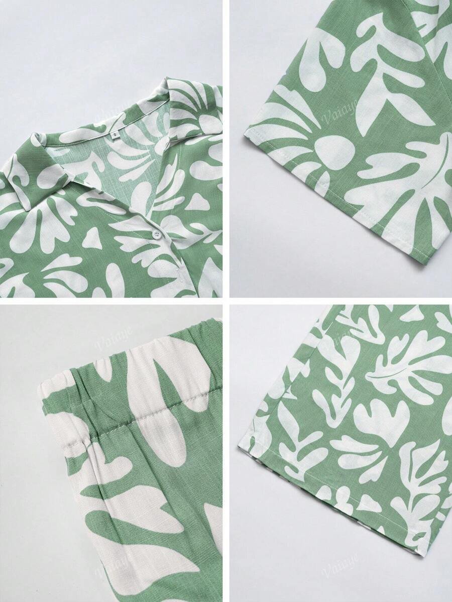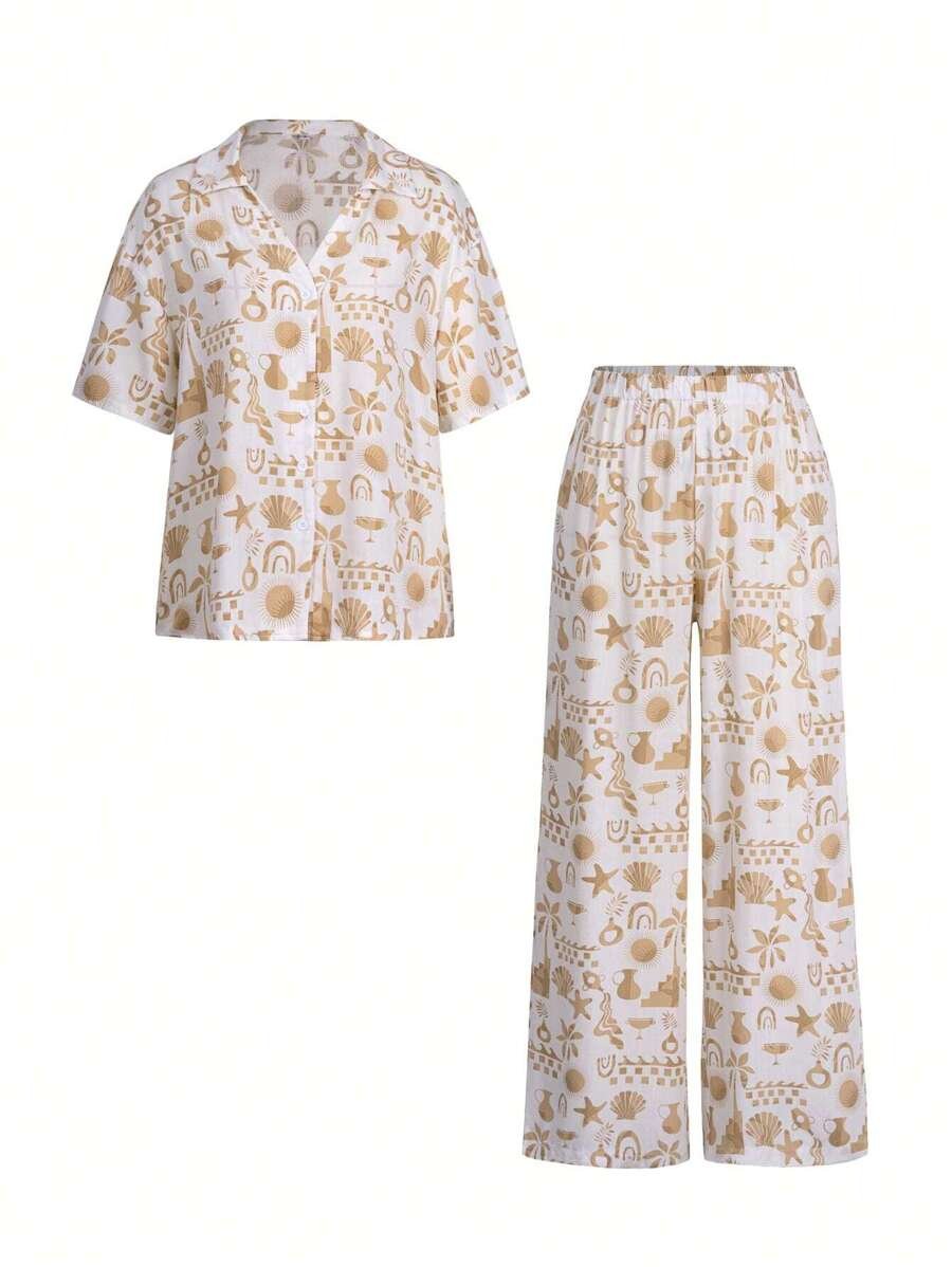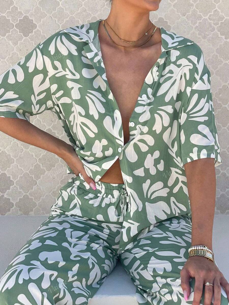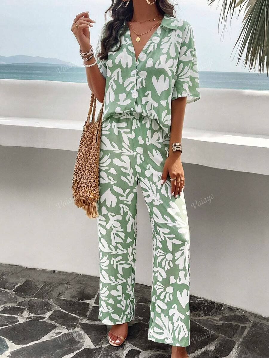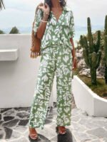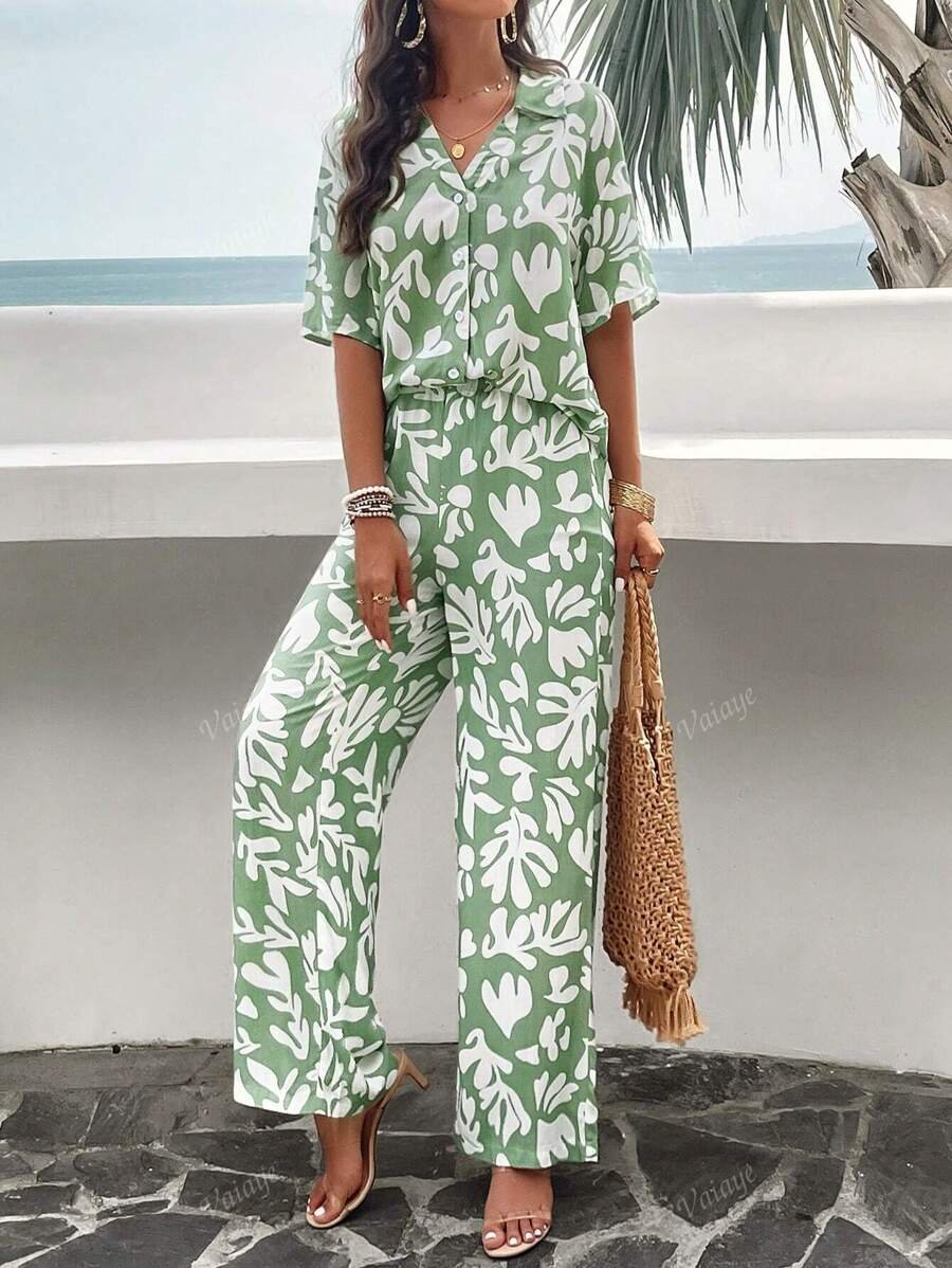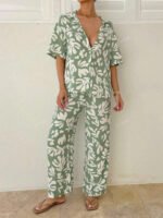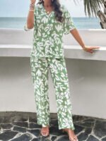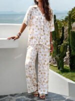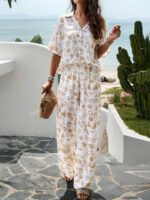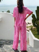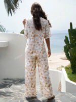 بنطلون بساق واسع طباعة الأزهار