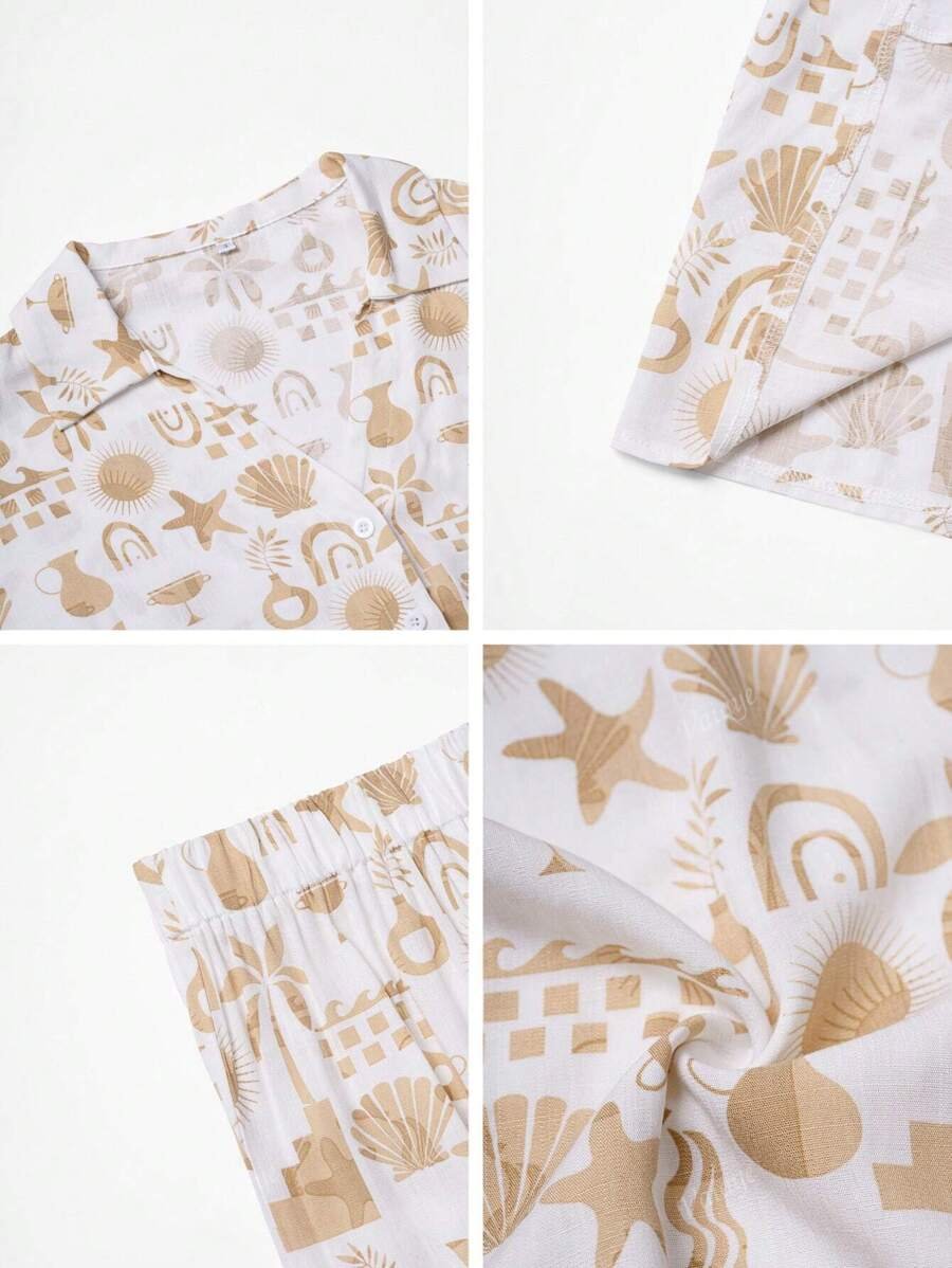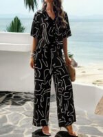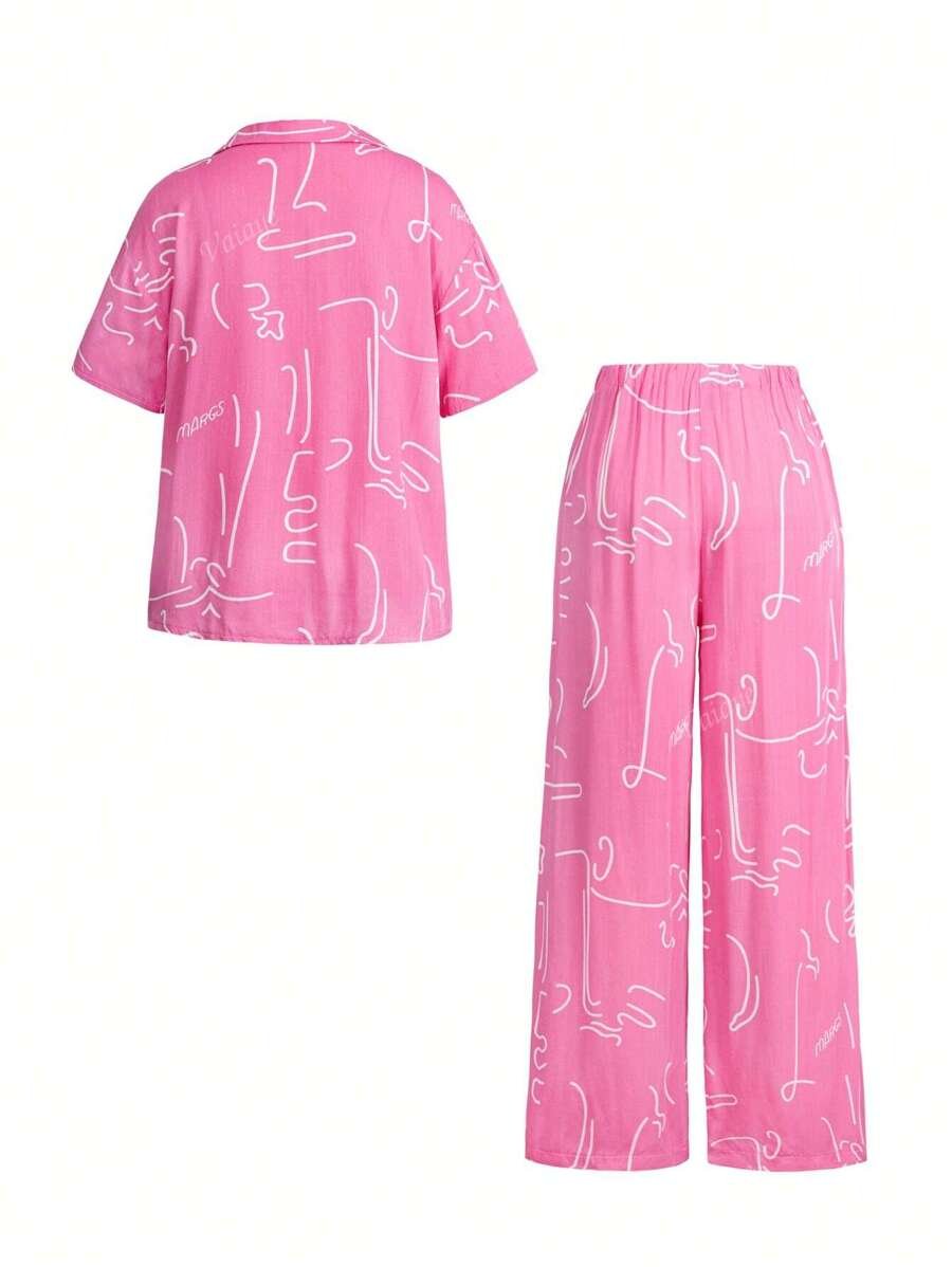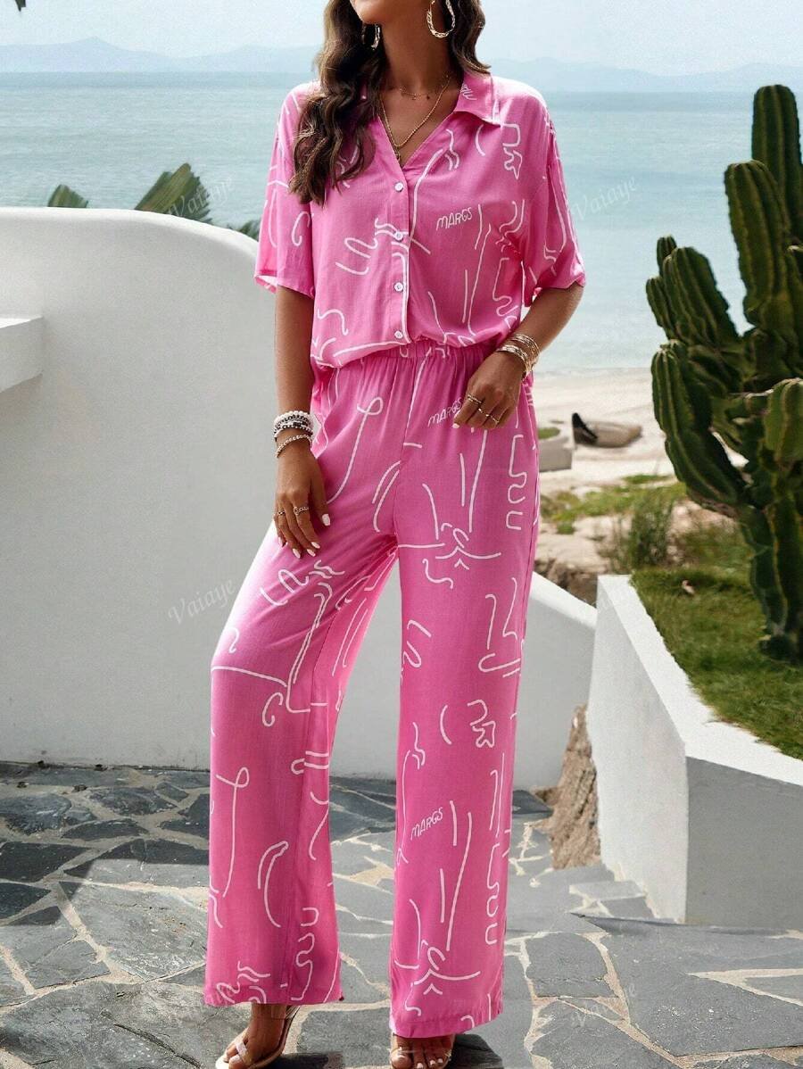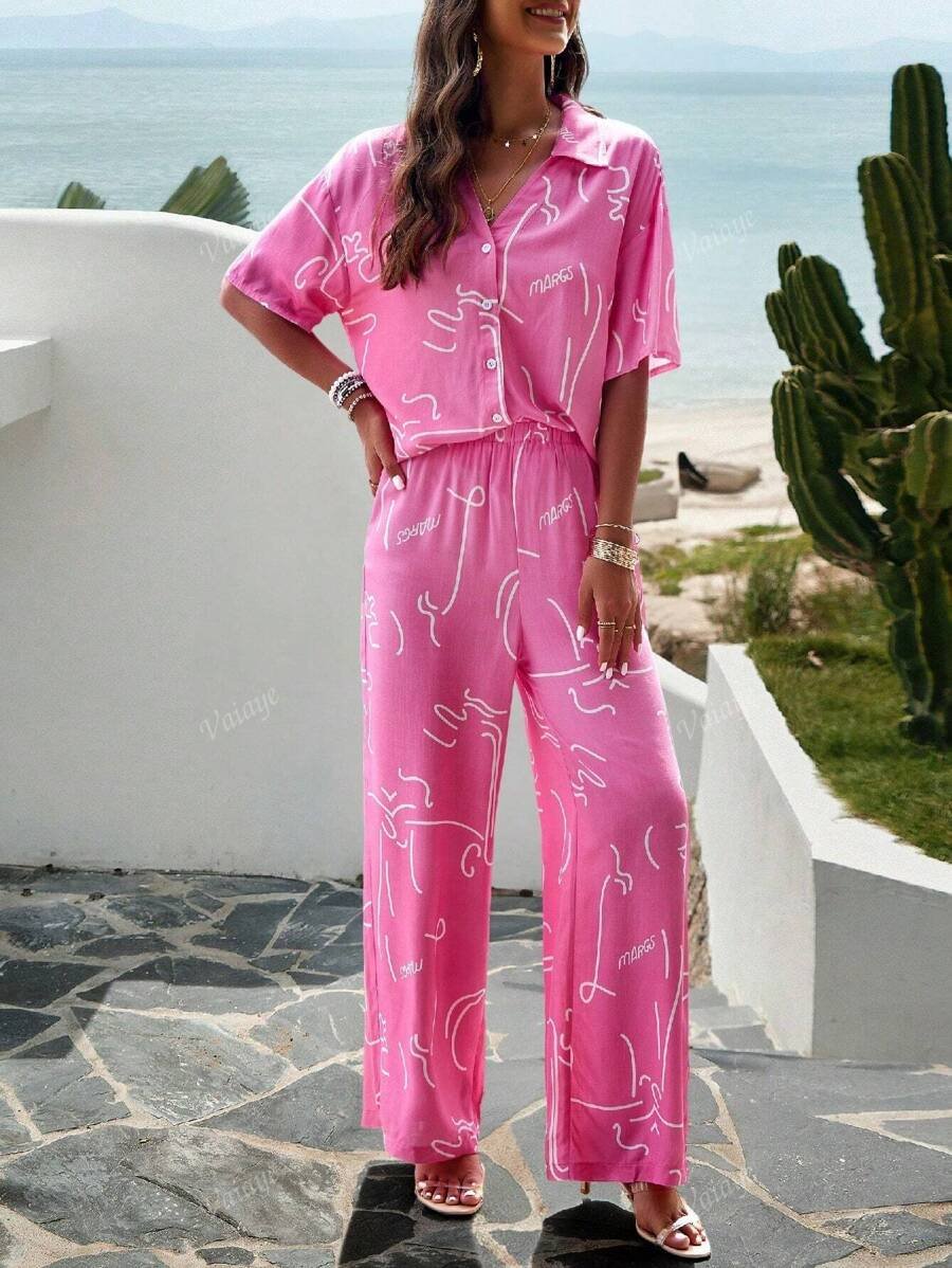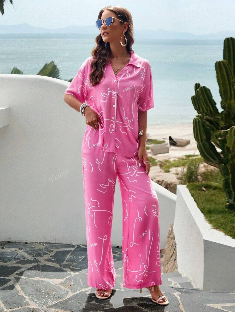 بنطلون بساق واسع طباعة الأزهار