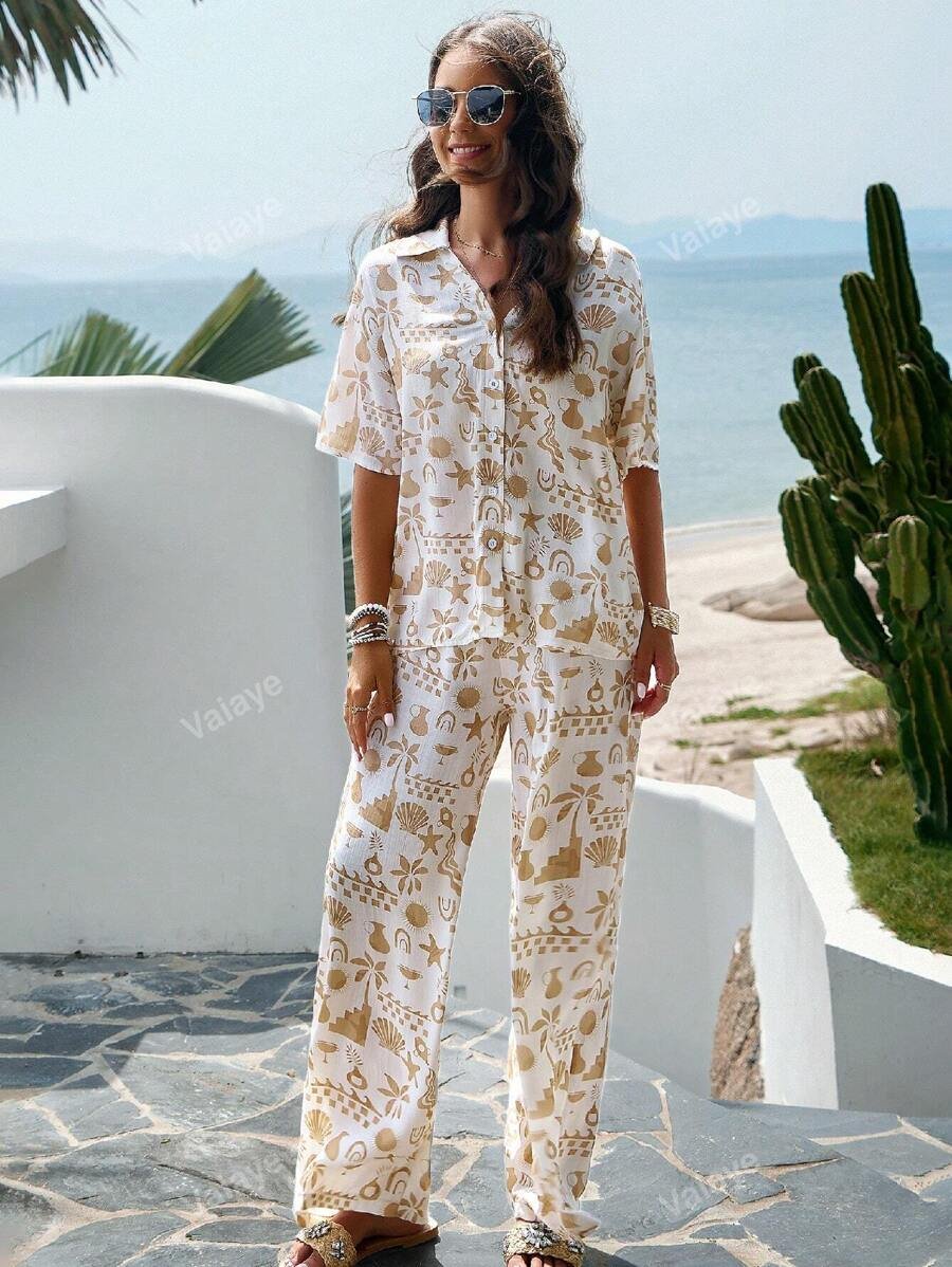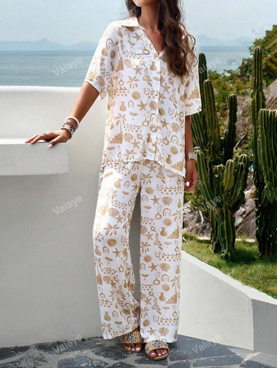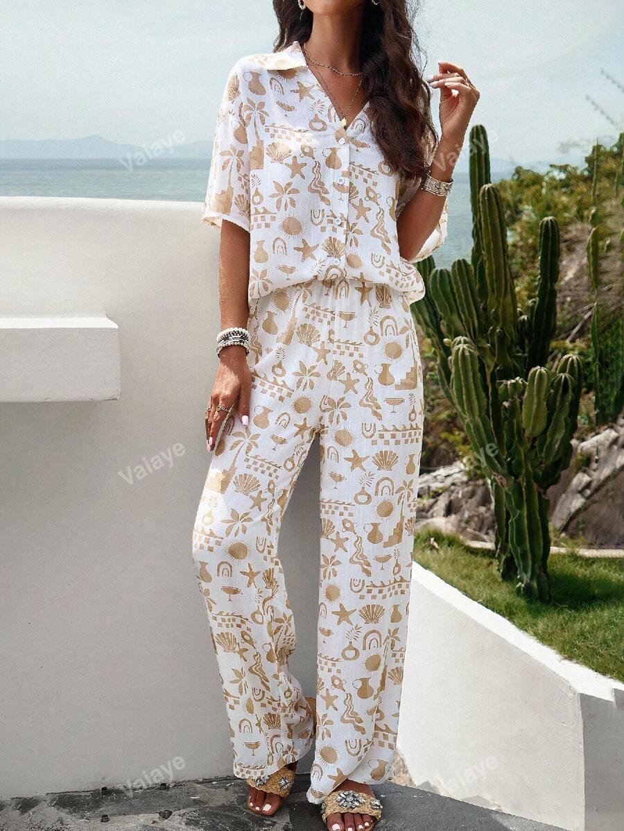 بناطيل نسائية كاجوال واسعة الساق بالطراز البوهيمي 82.00 ر.س
