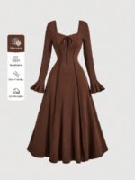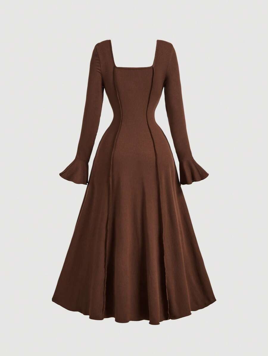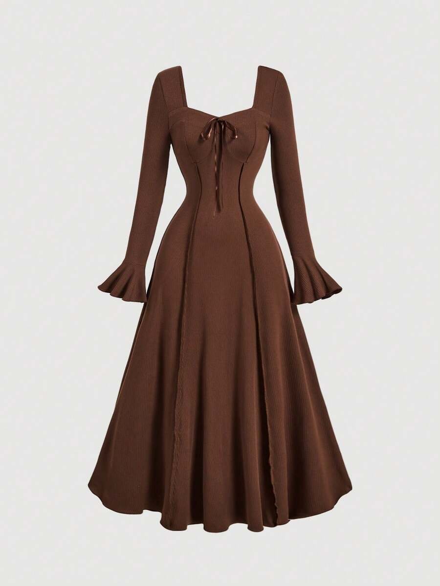 فستان بطيات بأكمام فلير
