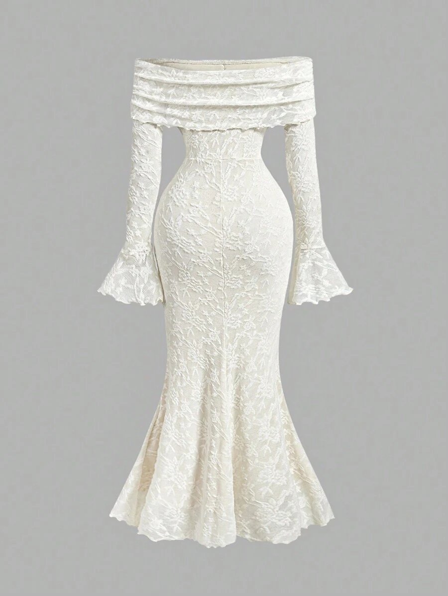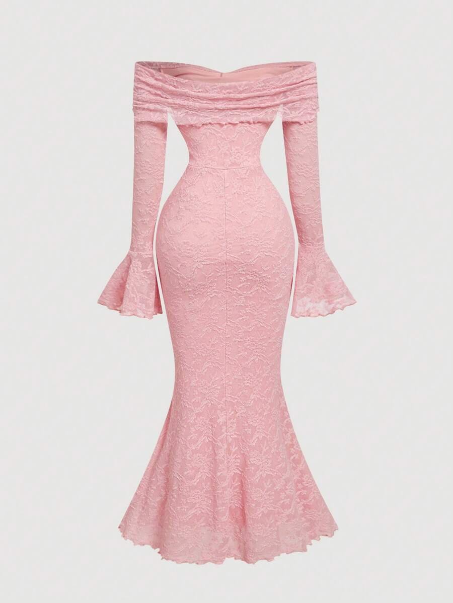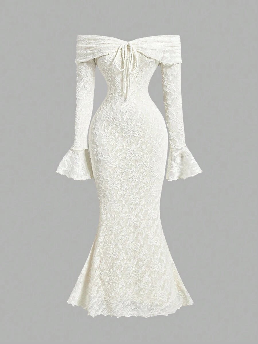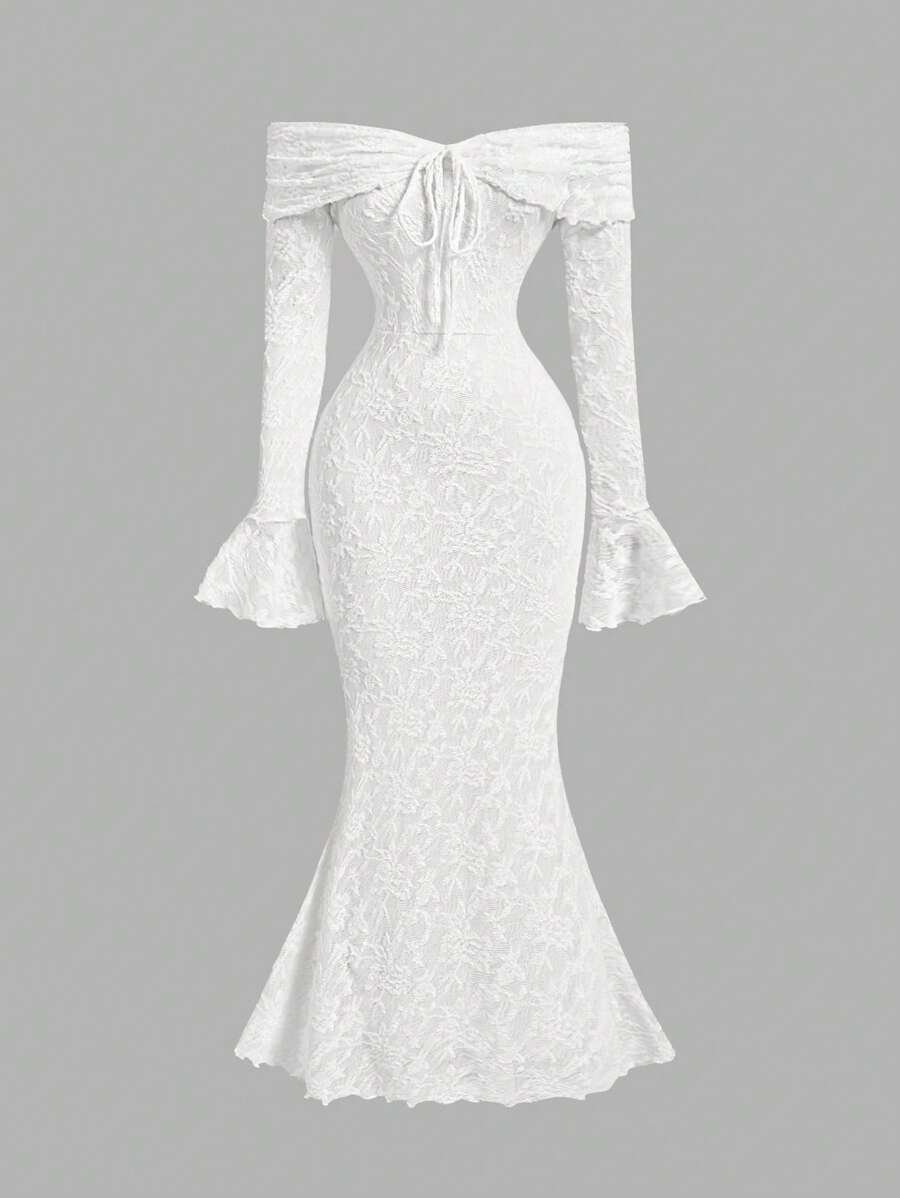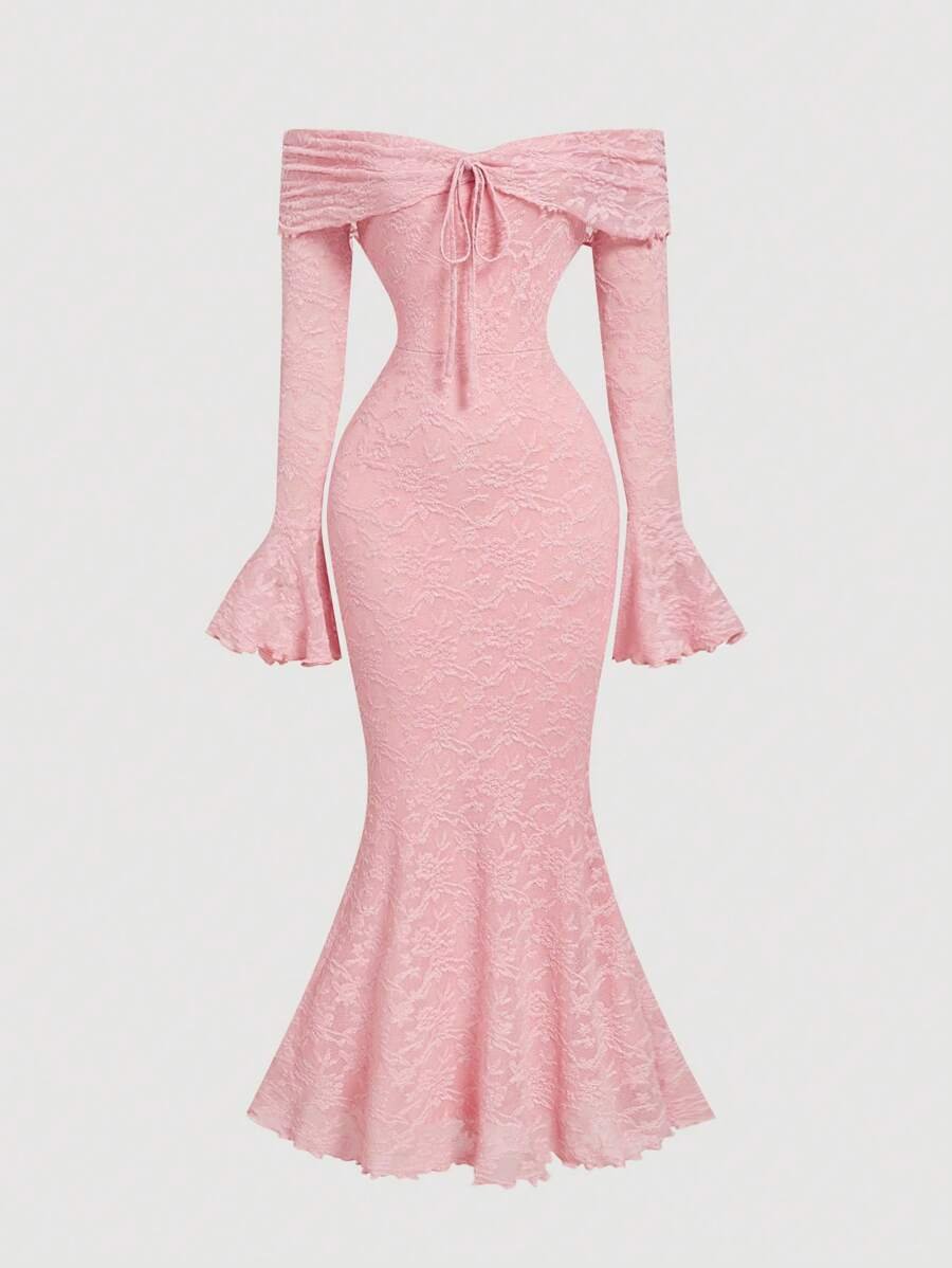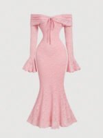 الرئيسية فساتين فستان حرير بياقة كاشفة الكتف